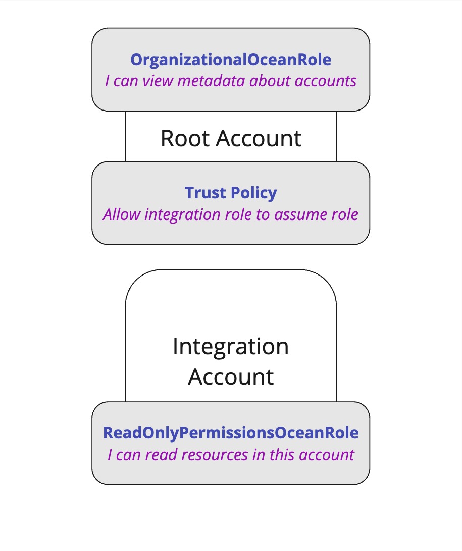 Then, In order for the integration's role to get accounts metadata, We'll need to give our integration role, ReadOnlyPermissionsOceanRole