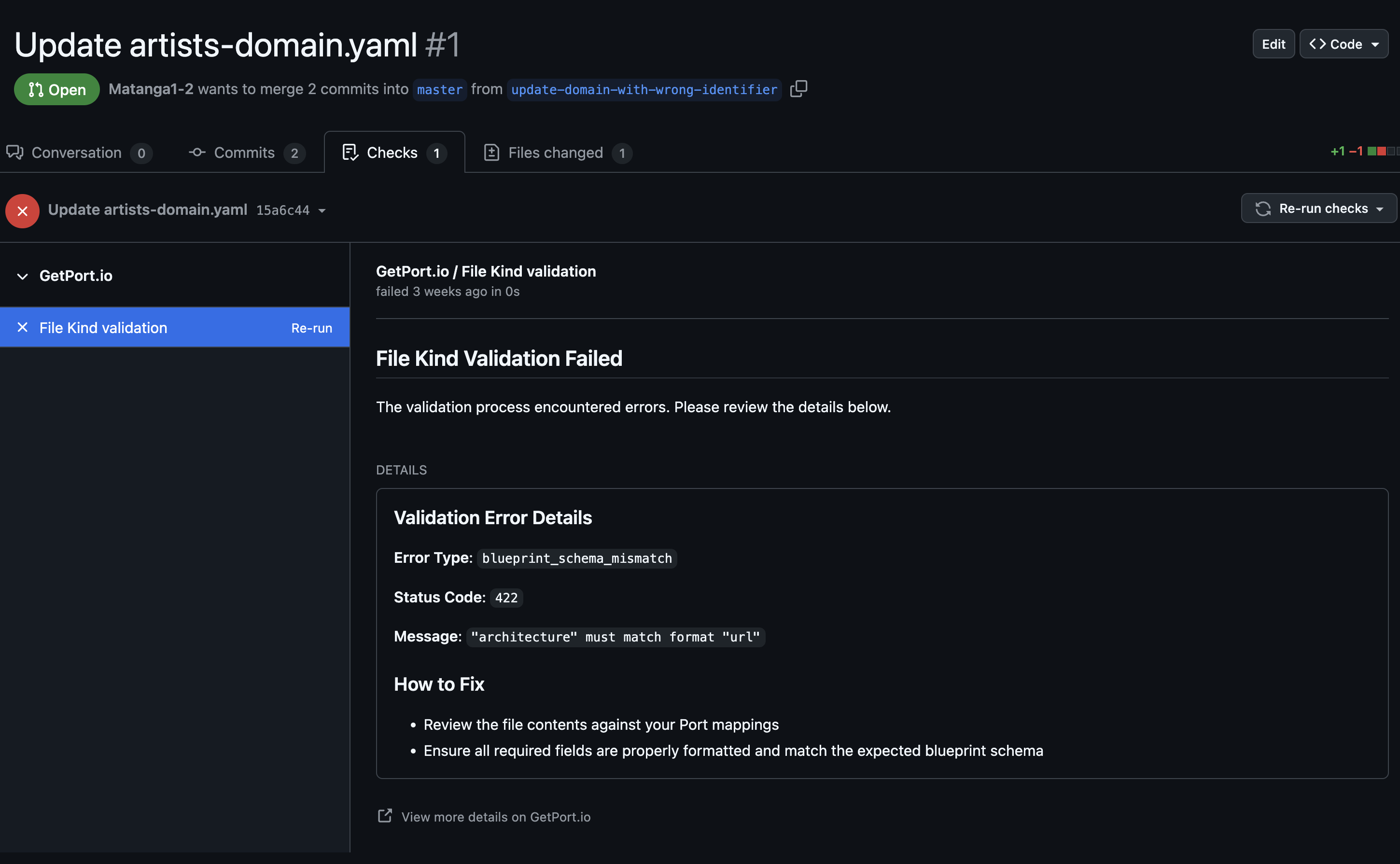 When a PR modifies a matching file, you will see a new check in your PR with the validation results.